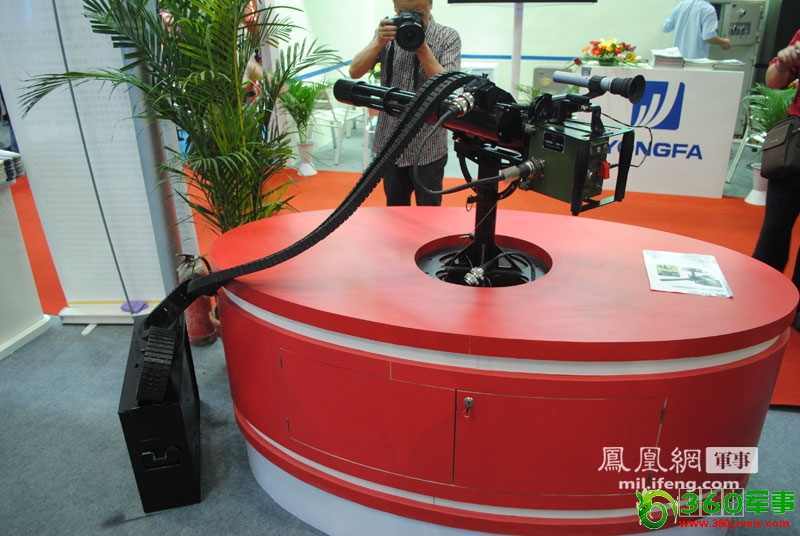 重庆建设工业集团展出的CS/LM12型7.62毫米转管机枪,该枪拥有大容量的弹箱,可携带子弹1000发。